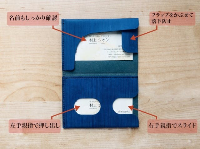 後で、落下防止のフラップを被せておけば、いただいた名刺を落とすこともありません。