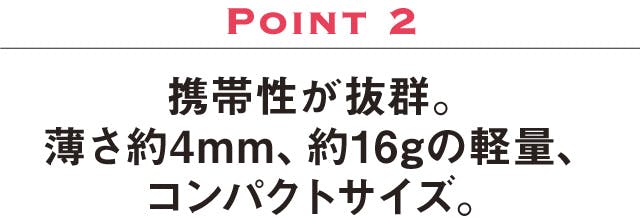 薄さ約4mm、軽量で携帯性抜群