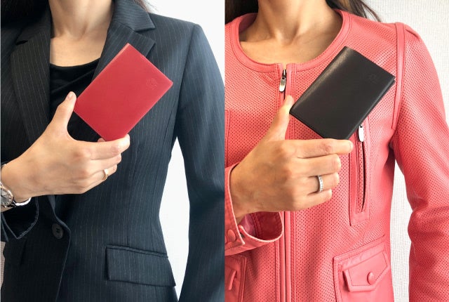 さらに、胸ポケットに入れた状態から、名刺だけを取り出すことも。