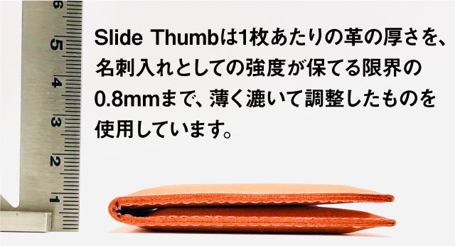 スライドサムのデザインは、革質を楽しんでいただけるよう、余計な装飾を排し、機能性を追求したシンプルなものにとどめています。