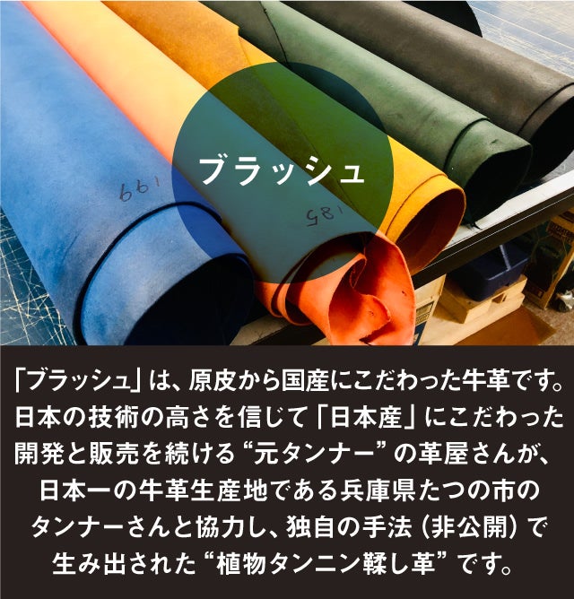 ●本文の一部に、栃木レザーの「サドル」を用いた製品画像がございますが、本プロジェクトでは販売致しておりません。機能説明の参考情報として、ご理解ください。