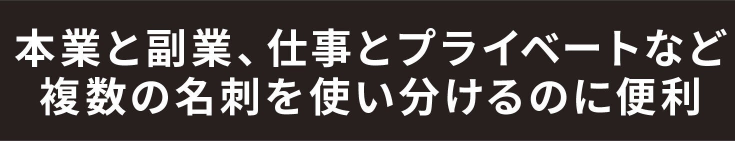 本業と副業用に、仕事用とプライベート用に、趣味や所属先ごとに…お持ちの名刺の数だけスライドサムをお使いいただければ、名刺が混ざることがなく、いつでもスッキリです。