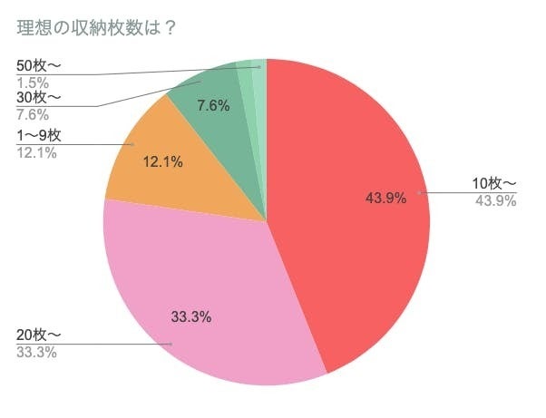 前作のver. YOにご支援いただいた方々に、スライドサムに収納したい名刺の枚数についてアンケートを行ったところ、10枚以内が43%、20枚以内が33%、10枚未満が12%、30枚以内が7%でした。