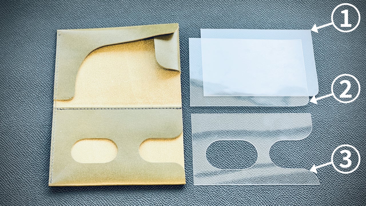 指の乾燥などにより名刺がスライドしづらい時に、滑りを良くするためのサポートプレート(KKプレート)を製作しました。収納部に差し込んでお使いいただくことでスライドしやすくなります。