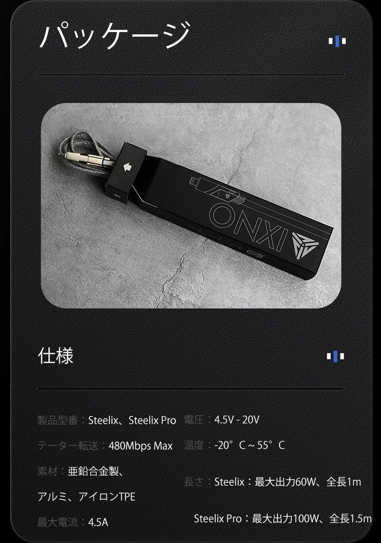Steelix:Type-C to Type-Cの60Wをサポートします。
