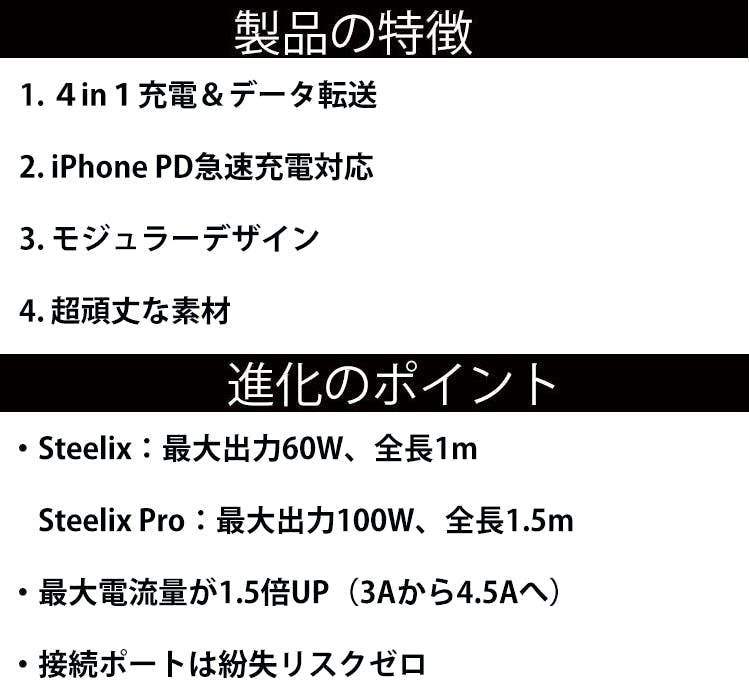 Steelix Pro:Type-C to Type-Cの100Wをサポートします。