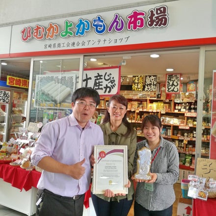 一番に見せるのはやっぱり『ひむかよかもん市場』の吉村店長と東郷さん!