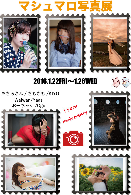 撮影会の1周年を記念して写真展を開催します!7名のカメラマンによるマシュマロ撮影会での作品を展示いたします。