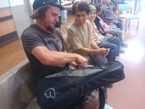 しかし、せっかくですのでルーディはウクレレ持参でゆうゆうの里デイサービスで弾き語りを披露してくれました。スタンドバイミー上手かったですなあ。お客様にとっては彼が今回のために練習してきてくれた「上を向いて歩こう」が良かったようです。