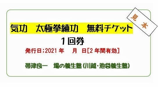 - ・練功・講義無料券2枚(川越又は池袋養生塾で使用可)
