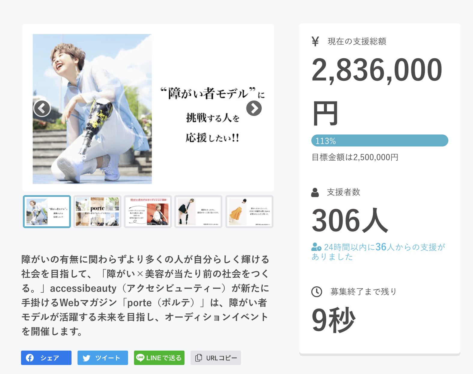 ¥2,836,000のご支援金額で幕を閉じました。