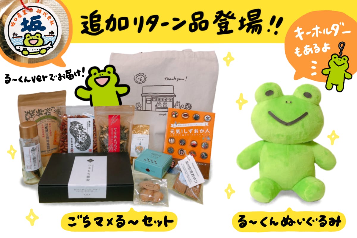 ごちマ×る〜セット、そしてる〜くんぬいぐるみが、いよいよ追加のリターン品として登場します。