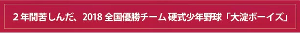 硬式野球チーム「大淀ボーイズ」は、結成53年を迎える歴史あるチームで、主に大阪市で活動しています。ボーイズリーグ(公益財団法人日本少年野球連盟)に所属し、小学部と中学部があります。 2018年には、第12回全日本中学野球選手権大会(ジャイアンツカップ)において優勝し、1542チームの頂点、日本一に輝きました。
