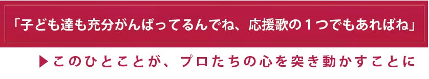 このような辛い日々を迎えてしまった選手たちは、文句も言わずに、歯を食いしばって 今日も練習に励んでいます。チーム役員の1人が、ふと漏らした言葉。 「子どもらも頑張ってるんでね、応援歌の1つでもあればね」 この一言が、このプロジェクトの始まりになりました。度重なる困難な状況にもめげず、夢を持って立ち向かう子どもたちの姿に心を動かされた大人たちが集まりました。