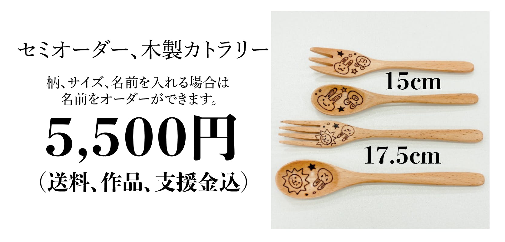 とても可愛いウッドバーニングのカトラリーやレジンのアクセサリーや布小物まで多岐に渡って作品を作成されている『smiLE☺︎』様です!