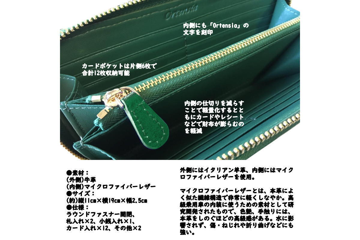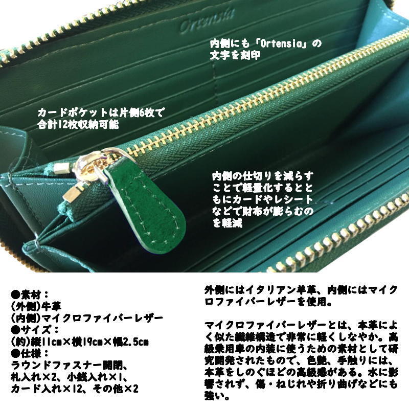 ●仕様:ラウンドファスナー開閉、札入れ×2、小銭入れ×1、カード入れ×12、その他×2