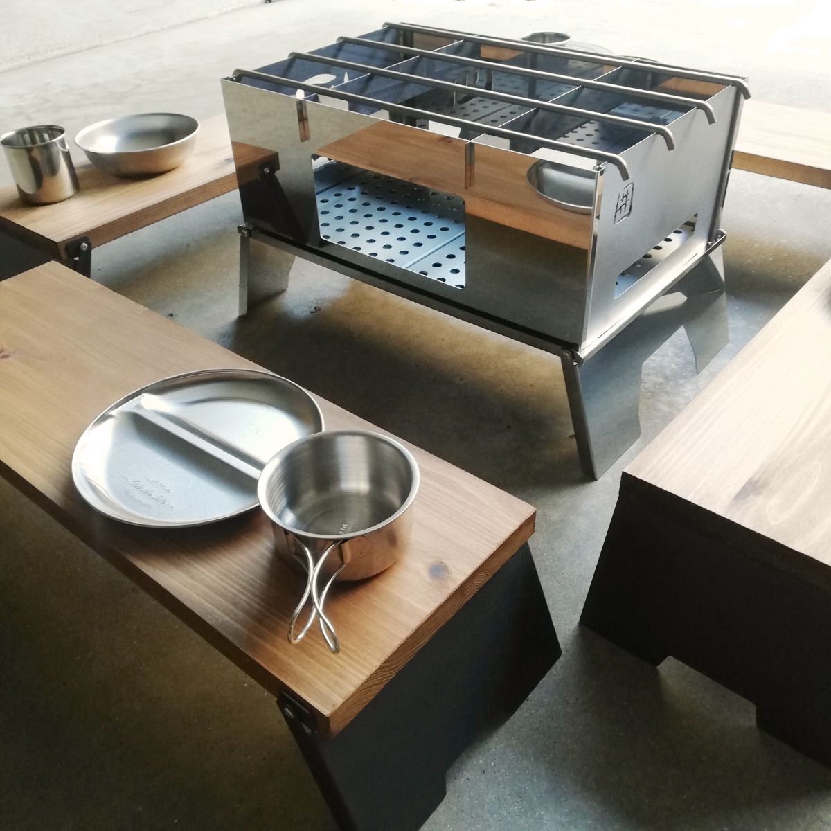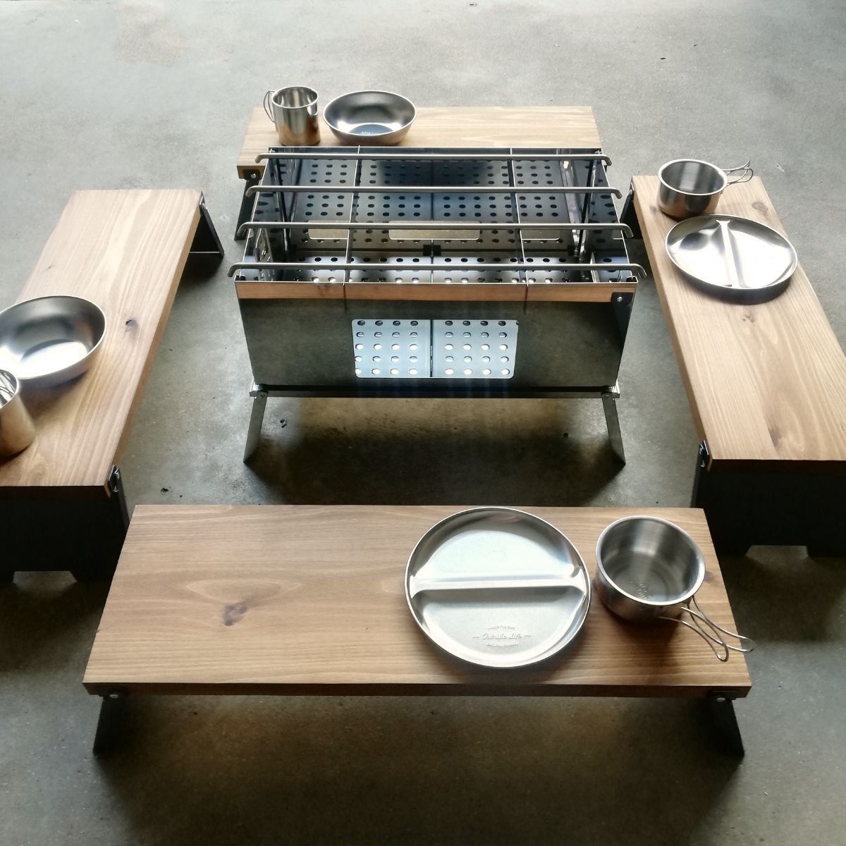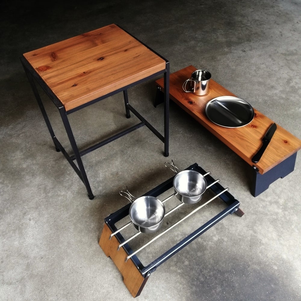 ※ミニテーブルのみ販売となります、焚き火台、イス、食器類などの備品はついてません。