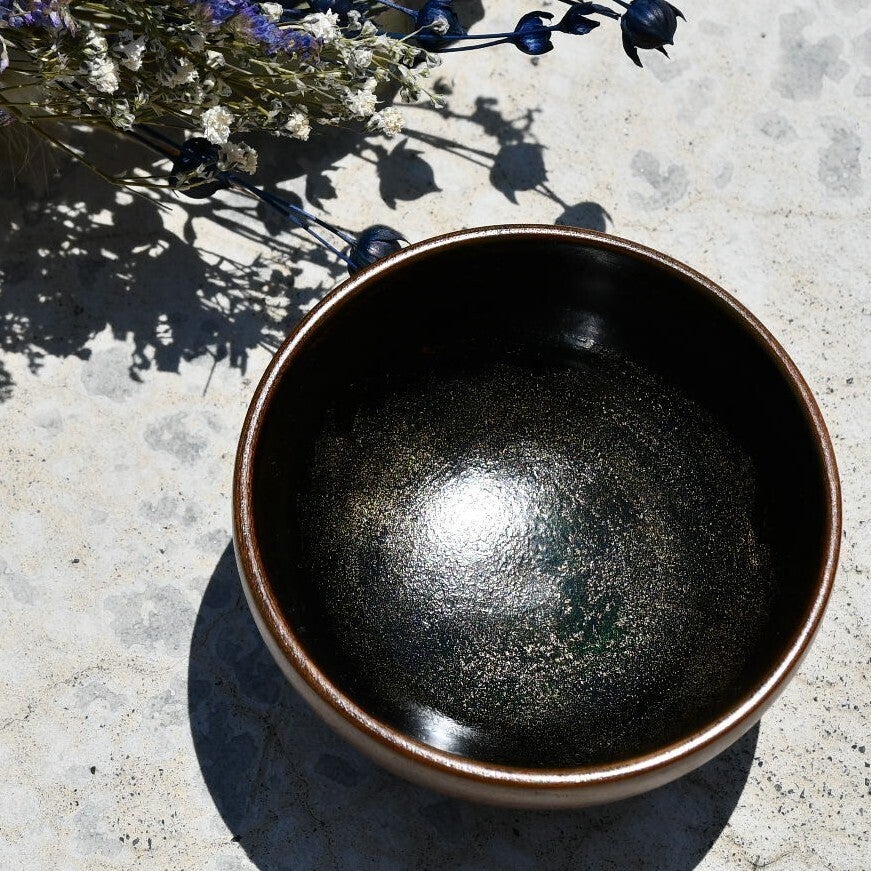 器の中には銀を蒔いており、水面に光が反射している風になっています。