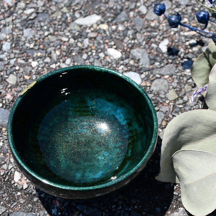 器の中はオパールと銀、さらに上から金粉も蒔いて閑雅な様をイメージしてます。