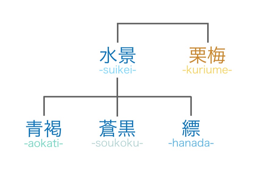 [水景の3種類]と[栗梅]の4つの中から選べます。水景はシリーズの総称です。