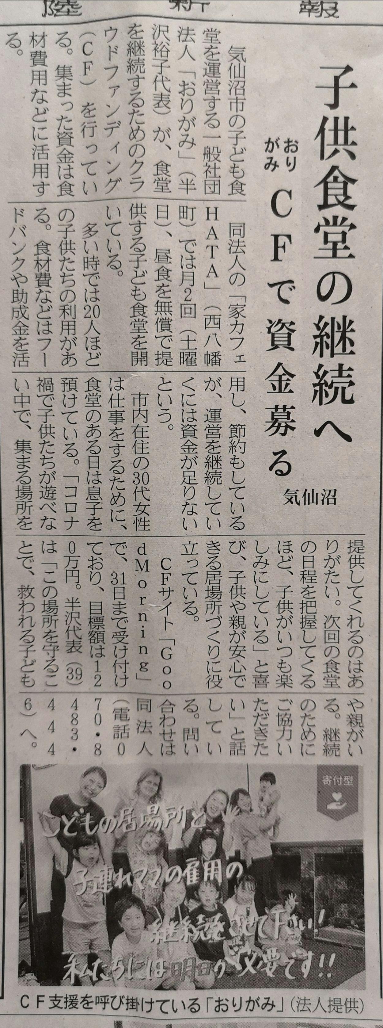 地元紙に取り上げていただきました!!