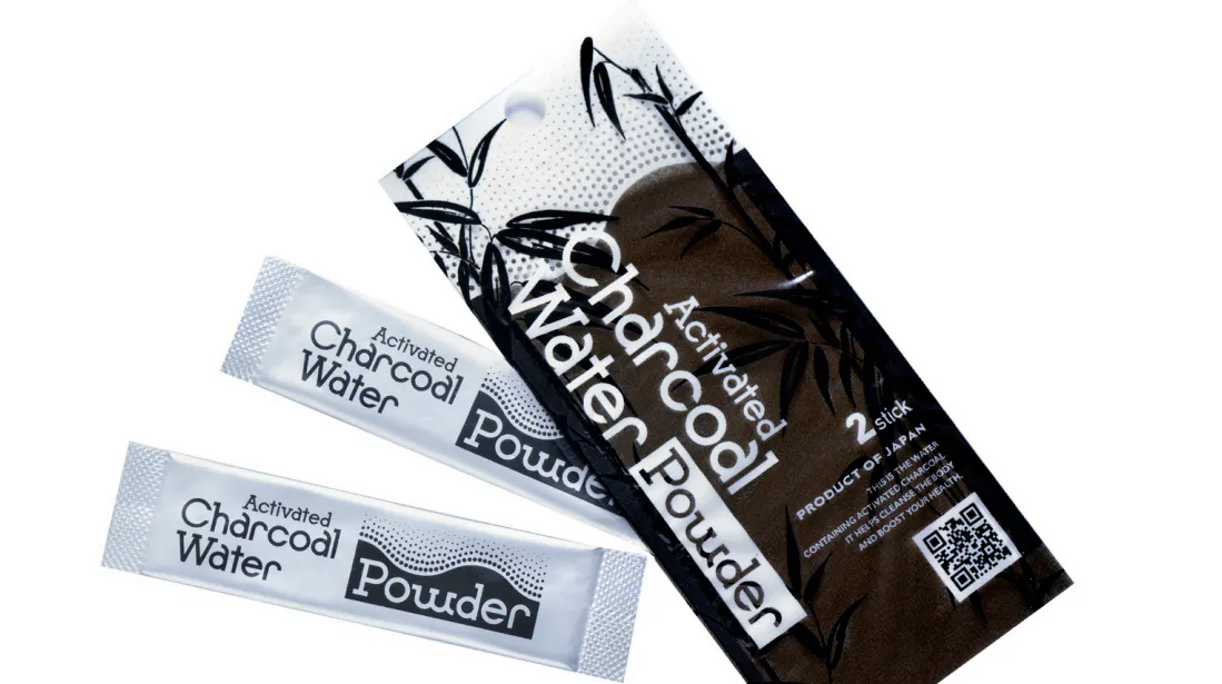 この「チャコールウォーターパウダー」は炭を原料とした健康補助食品。さっと溶ける顆粒状のパウダーで、飲み物に入れたり食事に混ぜ込んだり、誰でも手軽に摂ることができるのが特徴です。