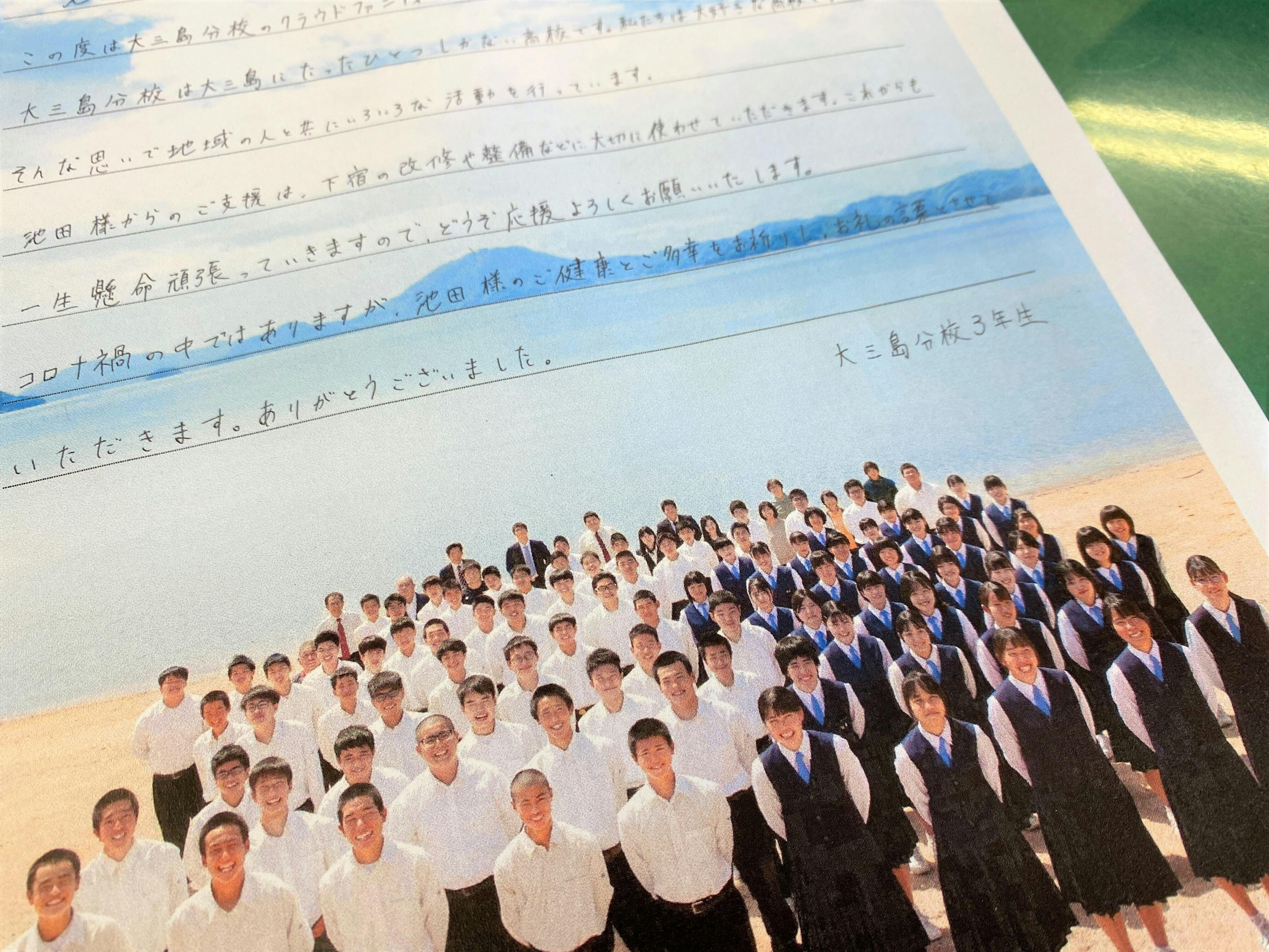お礼のメッセージは、生徒の皆さんが1枚ずつ手書きで書いてくれました