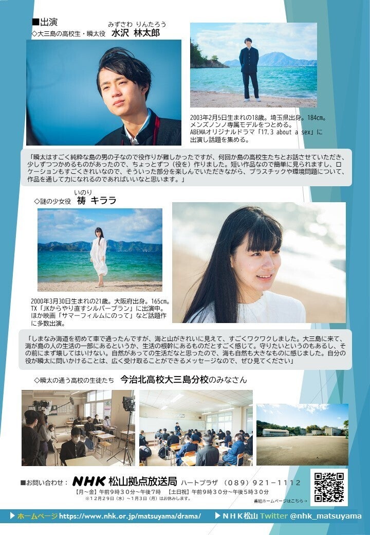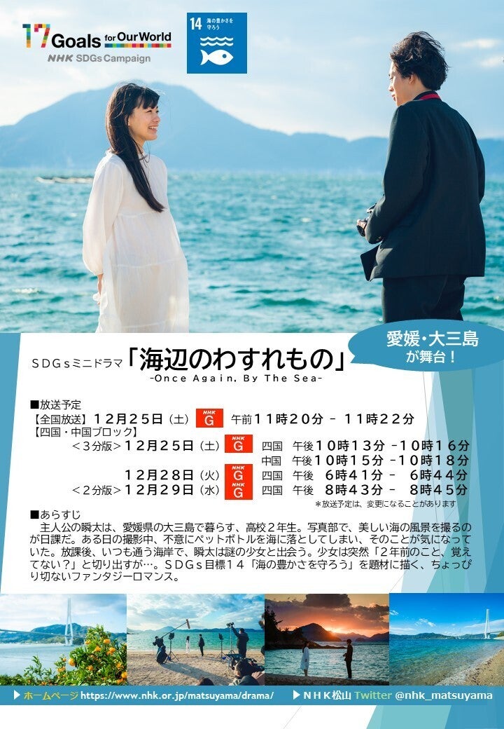 明日25(土)は、大三島が舞台のミニドラマ『海辺のわすれもの』が、