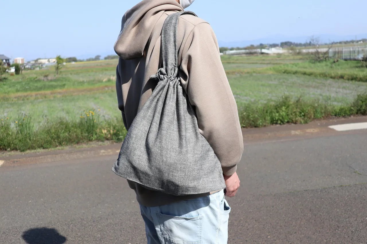 エコバッグは中身の見えない巾着型で持ち運びやすいデザインです。