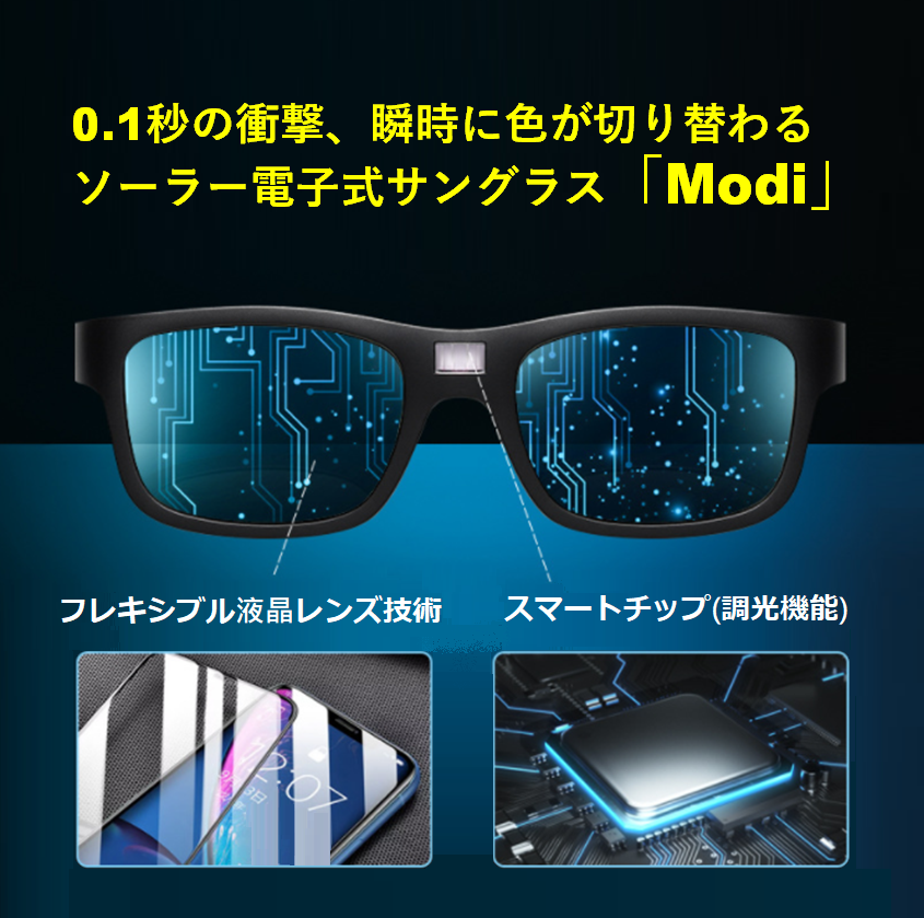 レンズ濃度の調光だけでなく、偏光機能も備えた「Modi」