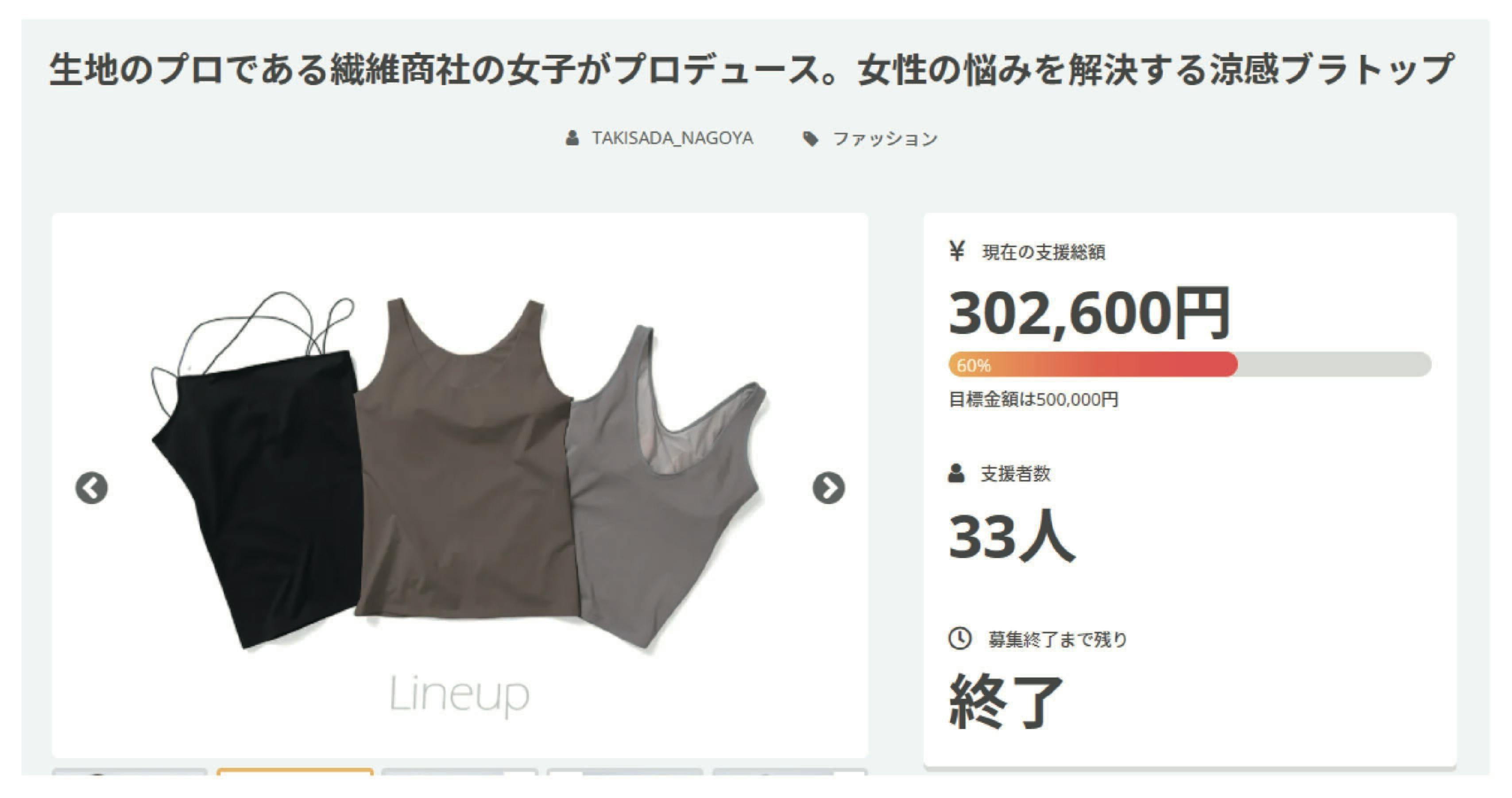 残念ながら目標を達成することはできませんでしたが、新素材の良さを知っていただく機会となりました事、とても嬉しく思います。