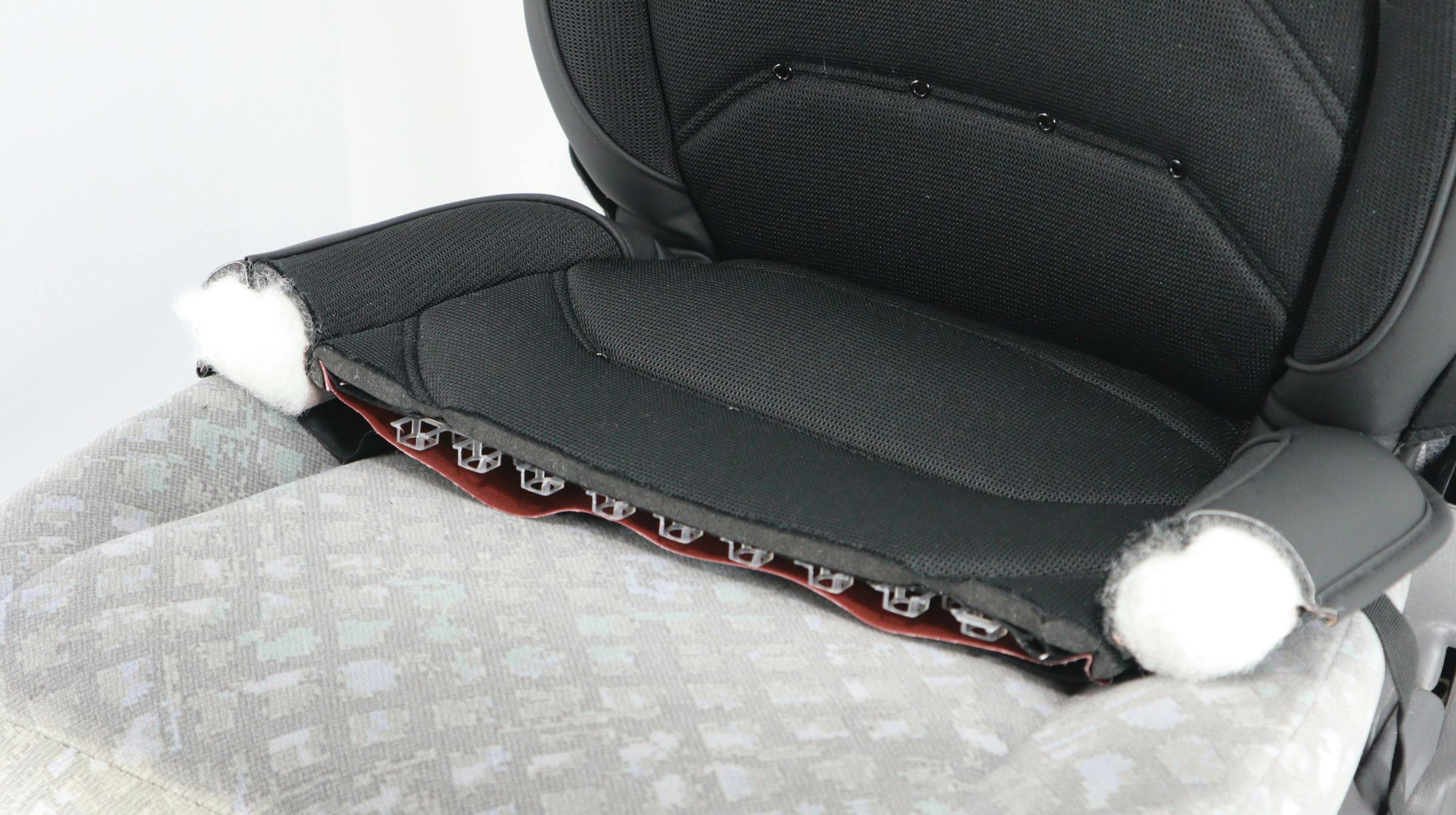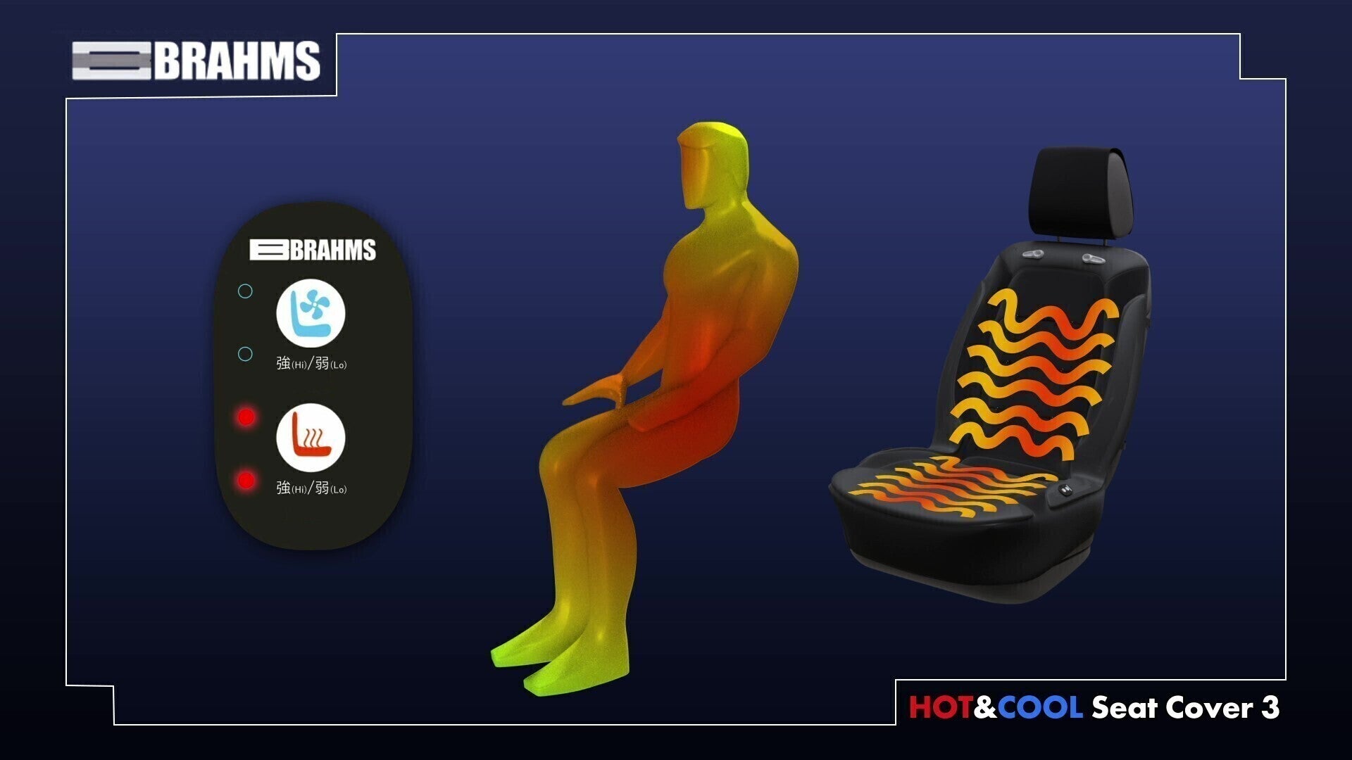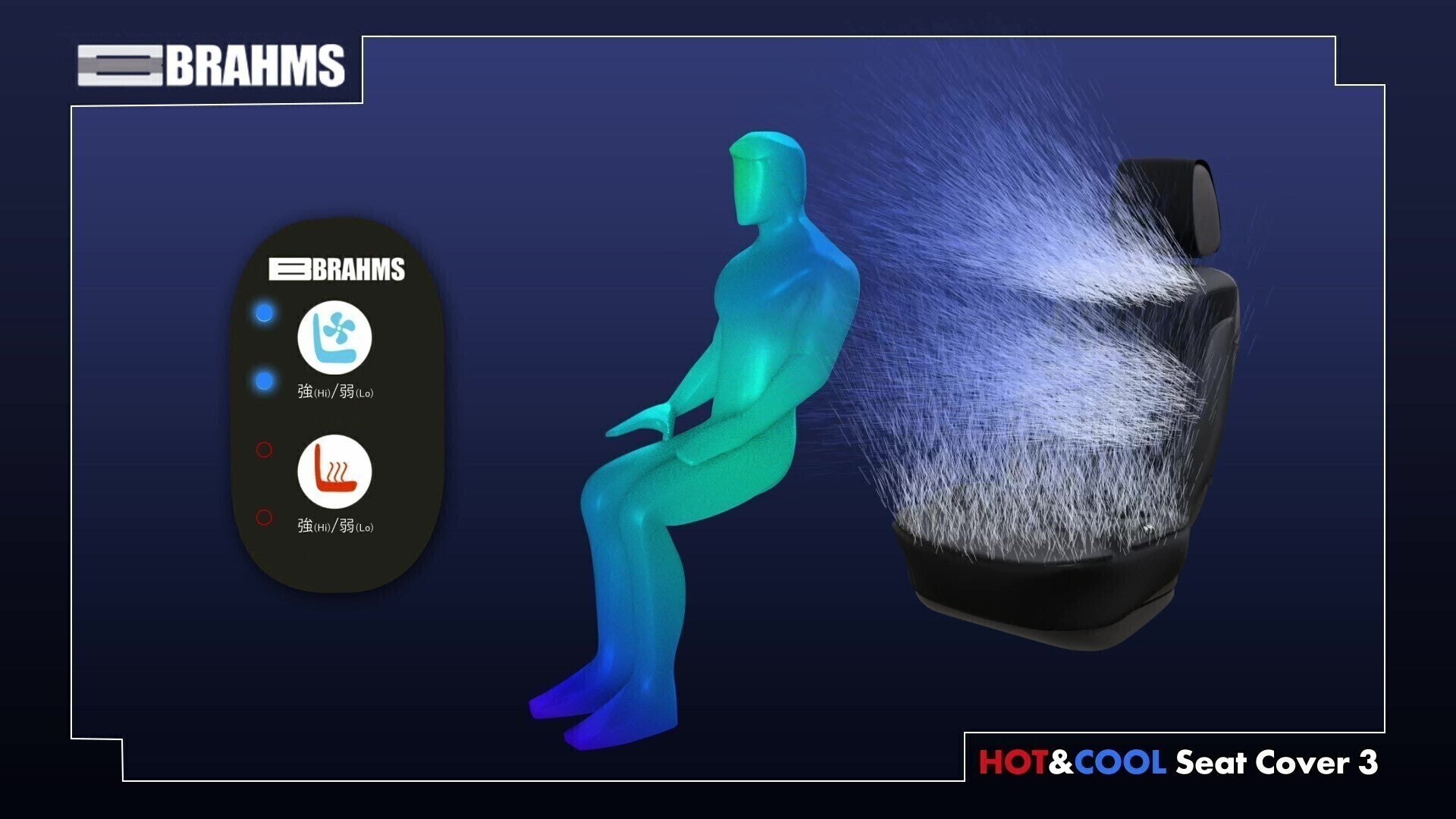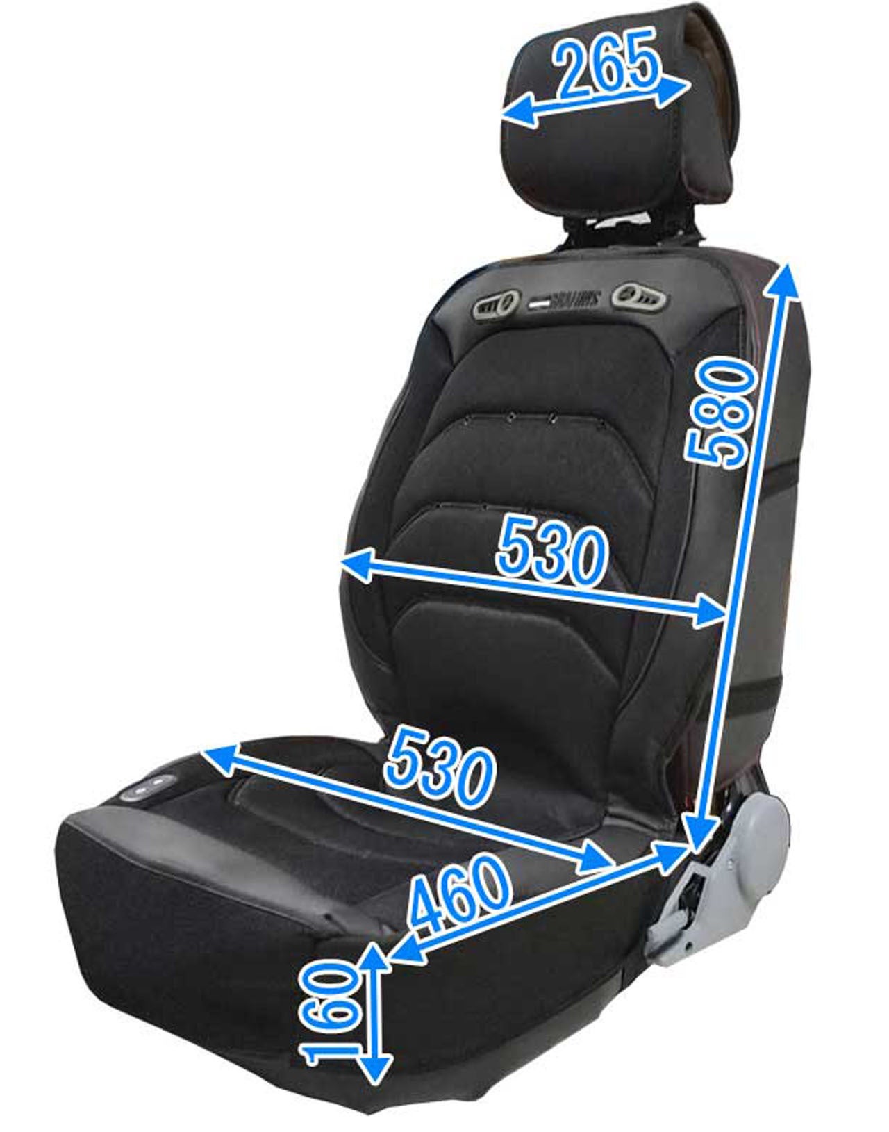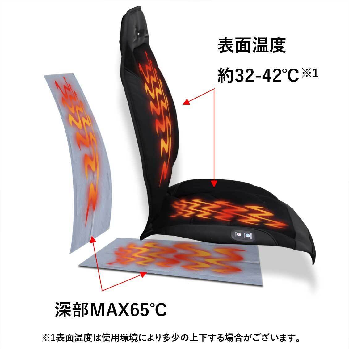シートカバーに熱源となる「電熱線」と風を起こす「ファン」を付け、「10mm」のウレタンクッションを内蔵させ、快適性をとことん追求したシートカバーとなっております。