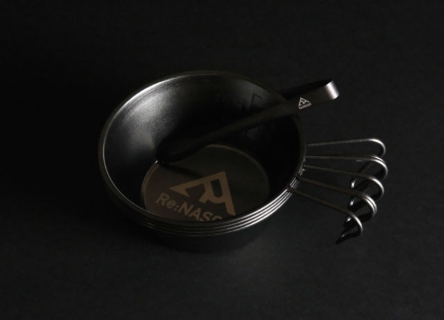 金物の町と呼ばれる燕三条の技術で特殊加工されたステンレスに、国内でも加工が難しいとされている黒酸化加工を施したシェラカップが誕生しました。