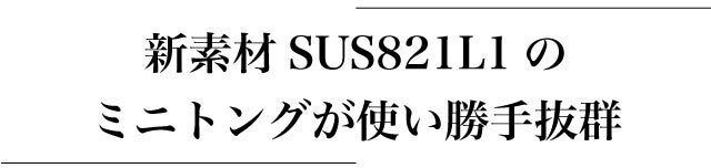 SUS821L1の強度(耐力)はSUS304の2倍あり、薄肉・軽量設計が可能な事から、ダムの壁面、トンネル内部の金物、ホームドア、ソーラーパネルの架台など幅広い用途で使われている、注目の新素材をこのミニトングにも採用。