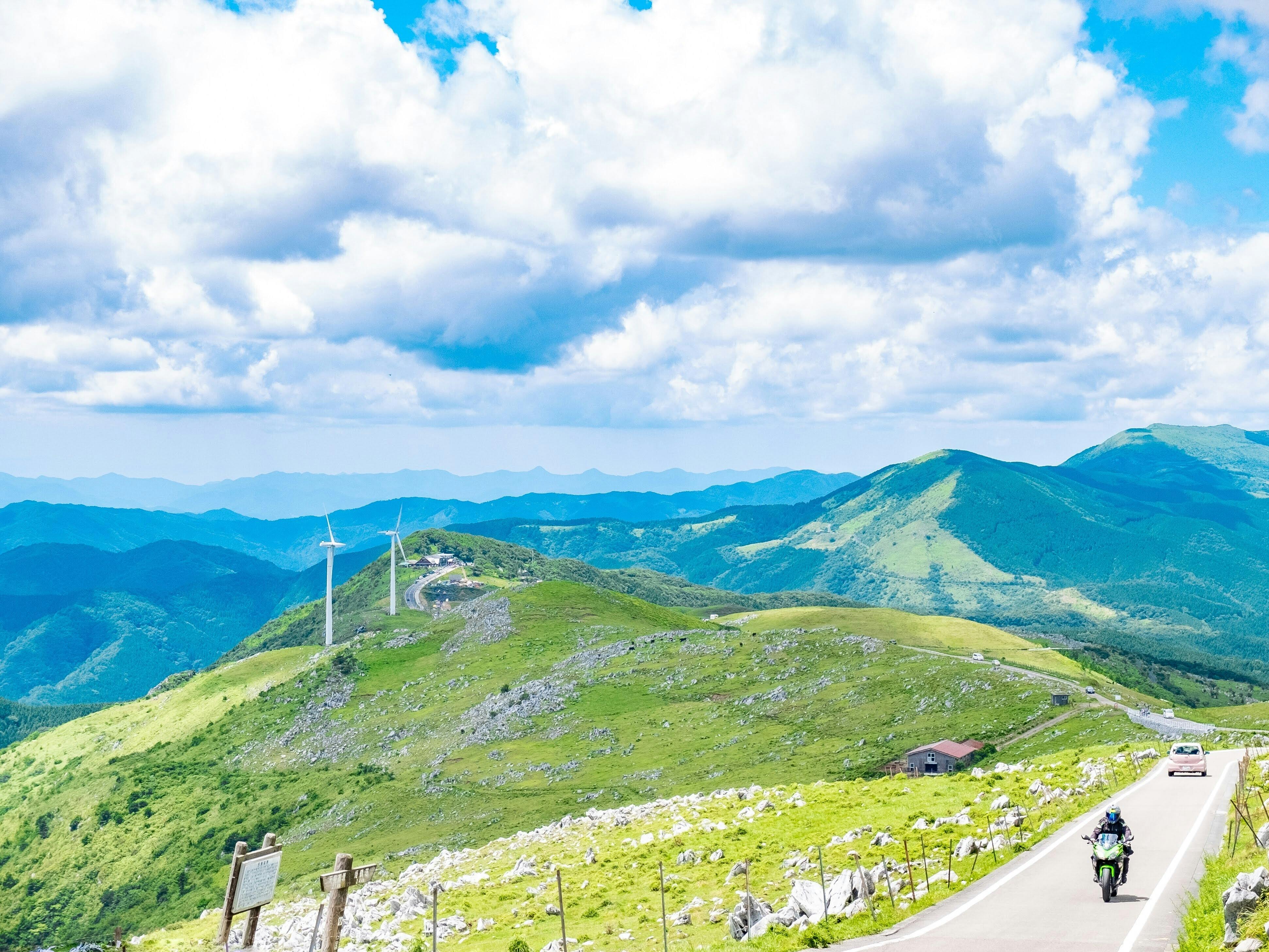 四国の大絶景・四国カルストにある写真スポットとして有名な「高知県と愛媛県の県境」。