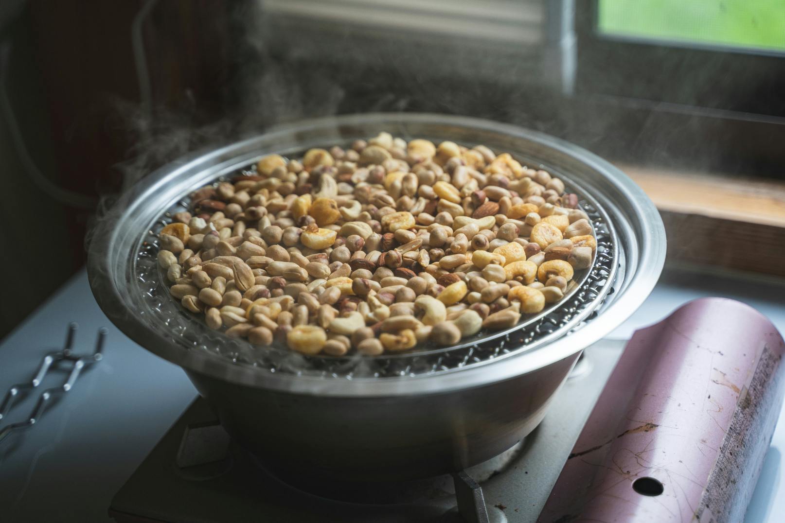 一般的には、大量のナッツを長時間スモークして仕上げていますが、CaCoooの場合は少量のナッツを短時間でスモークして仕上げていきます。