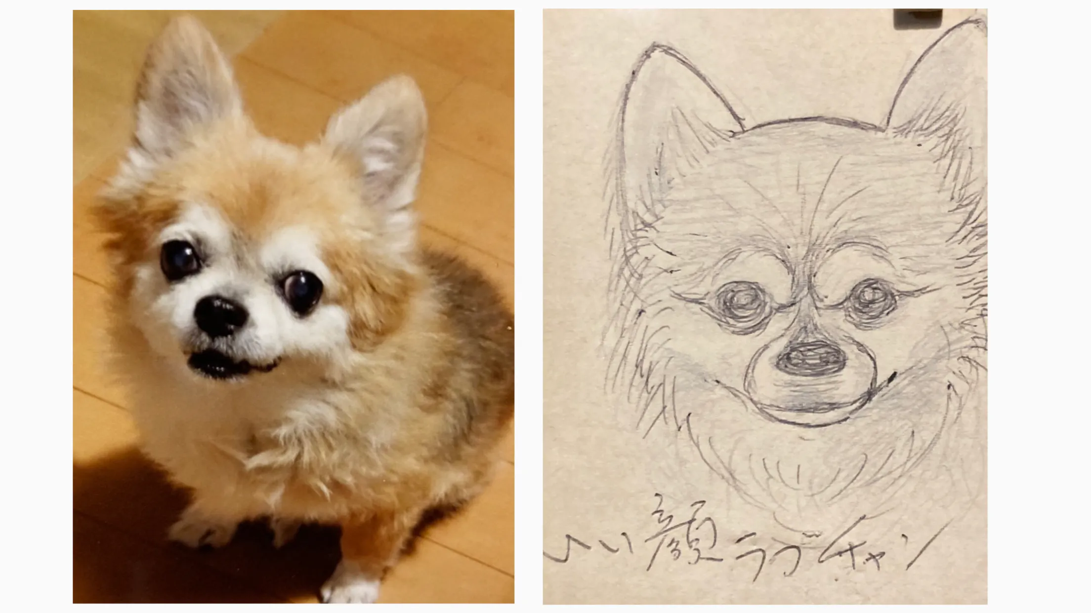 今日の写真は実家の愛犬ラブちゃんと、それを模写した父の絵です!
