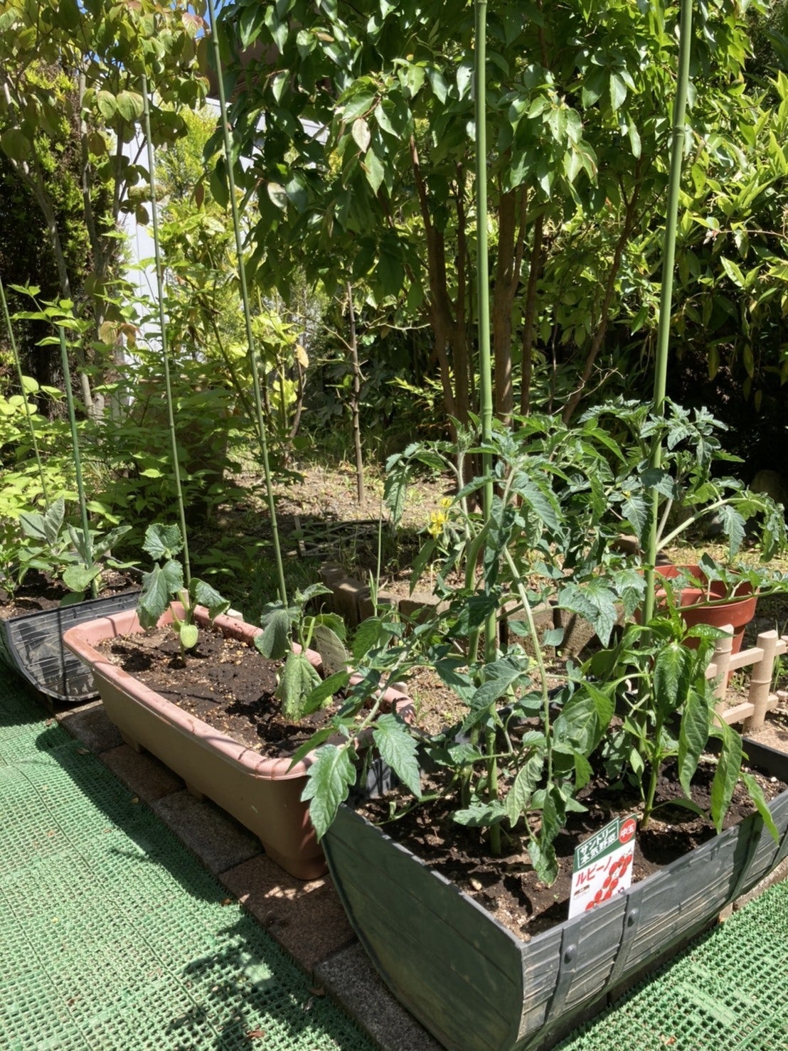 小さな苗だったナス、トマト、きゅうりが、どんどん大きくなっています。生命を感じますね!
