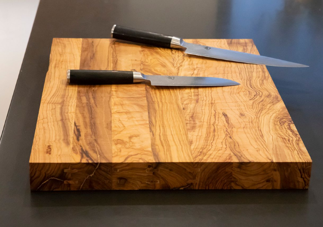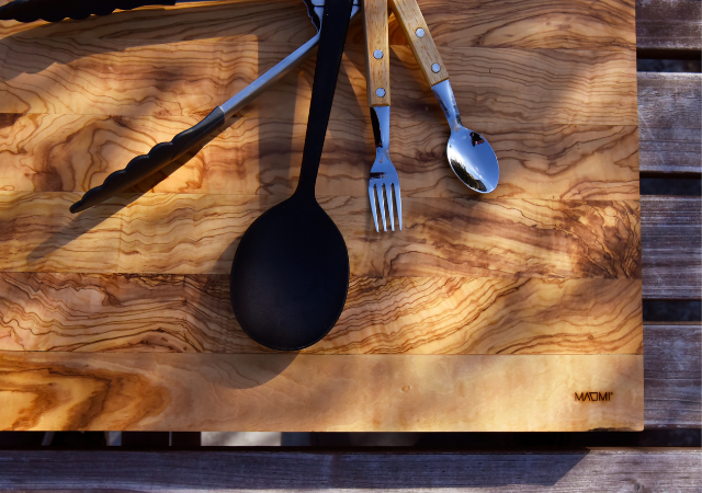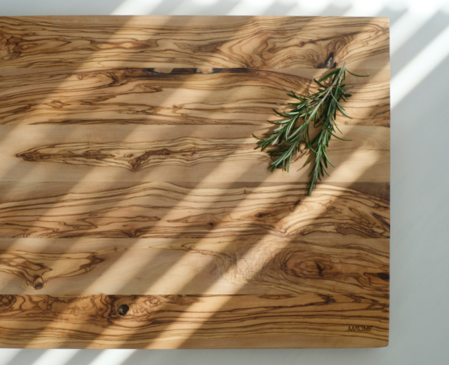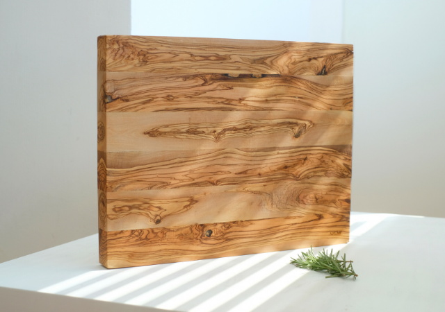 まな板【BENNY】はトルコで何世紀にもわたって育ったとても硬くて美しい霜降りのオリーブ材を使っており、私たちが納得するまな板をご提供できることを誇りに思います。