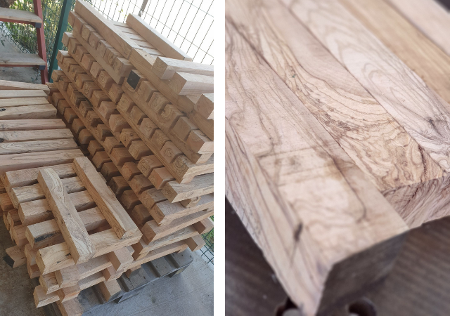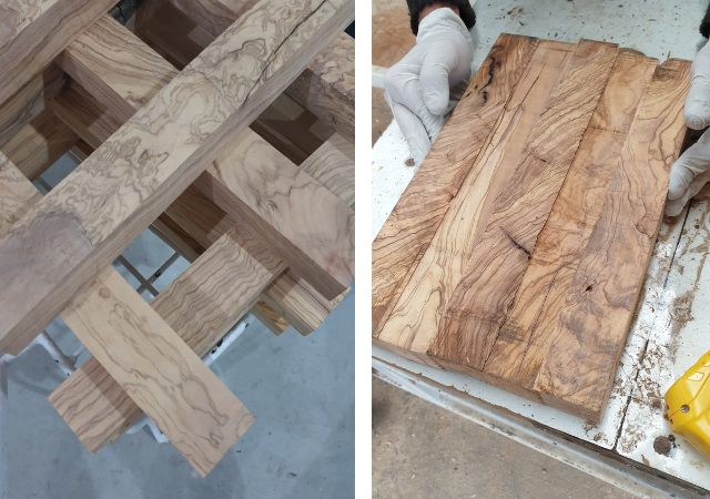 オリーブ材は他の木材(ブナ、オーク、檜等)に比べ、ノコギリが何度か折れるくらいとても硬い木材で、加工するのがとても難しいといわれています。