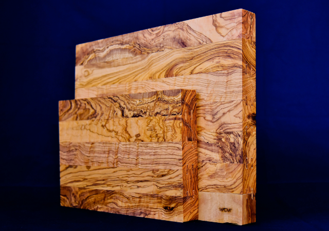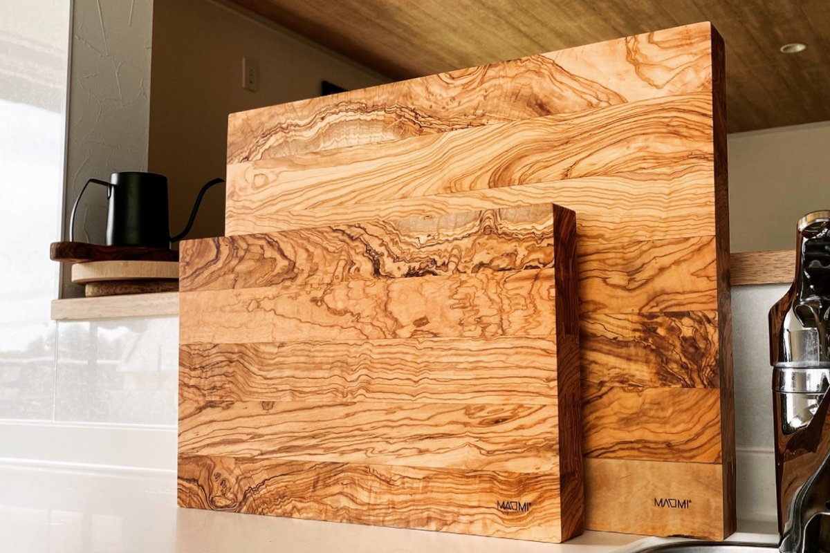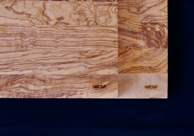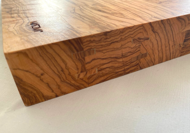 1枚板とはまた違い、棒状の板が組合わさってできているまな板は多種多様に表情を変え、1つ1つ異なった独特なオリーブ材の木目は装飾的な魅力があります。