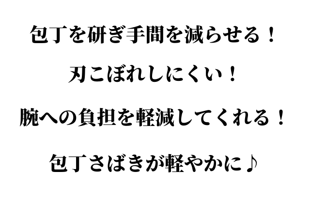 木製のまな板には程よい弾力性があるため、他のプラスチック製やゴム製より刃当たりが柔らかく包丁の刃先が潰れにくいといわれています。