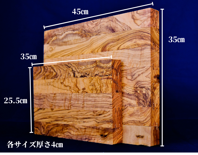 オリーブ材のまな板で厚みが4㎝もあるものはなかなかありません。