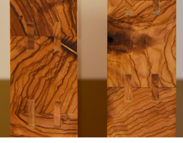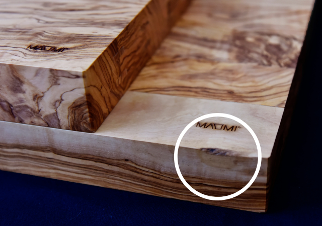 多種多様に表情を変え、1つ1つ異なった独特なオリーブ材の木目は装飾的な魅力があります。