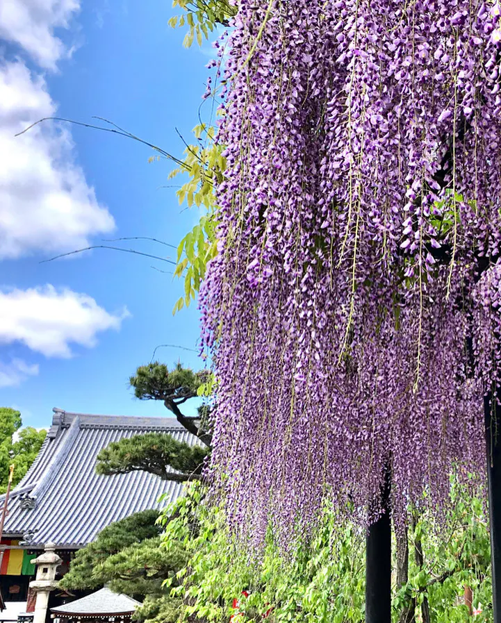 解体中の阿弥陀堂の足場に登って撮影したものです。藤を上から見れる事ってなかなかないように思います。