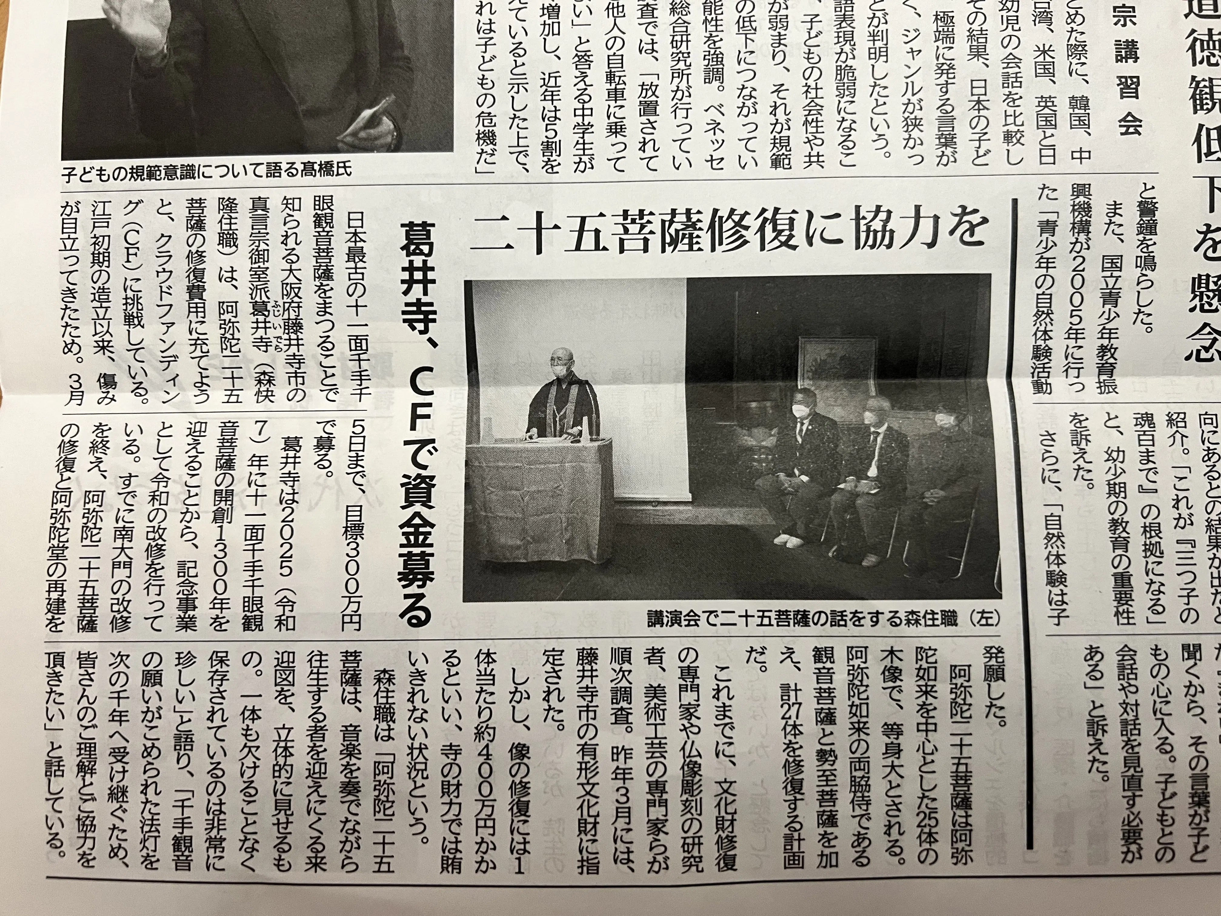 あまり馴染みのない新聞かと思いますが、文化時報と言います宗教専門紙に今回のクラウドファンディングを紹介いただきました。