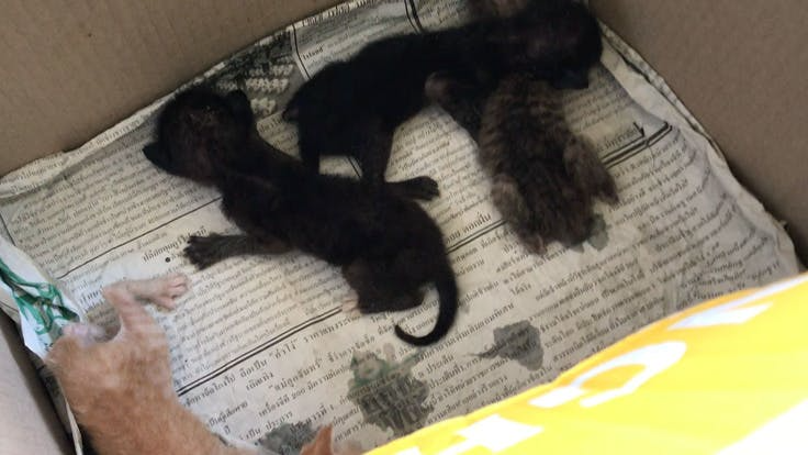 おそらく、母猫は子猫を生んだ数日後、大型犬に遭遇してしまい、子猫を置いて逃げてしまったようです。