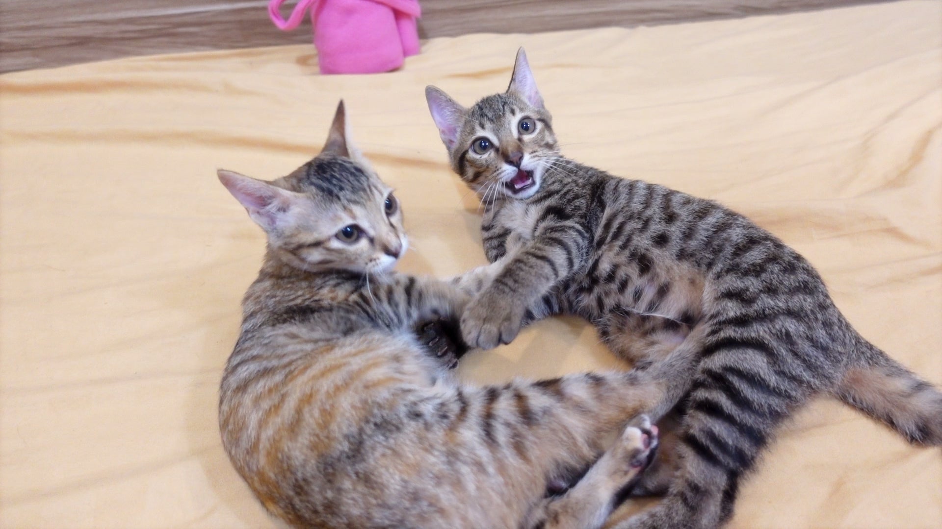 保護活動を開始して、初めて里親さんの元へ行った元気な生後2ヶ月の子猫2匹。