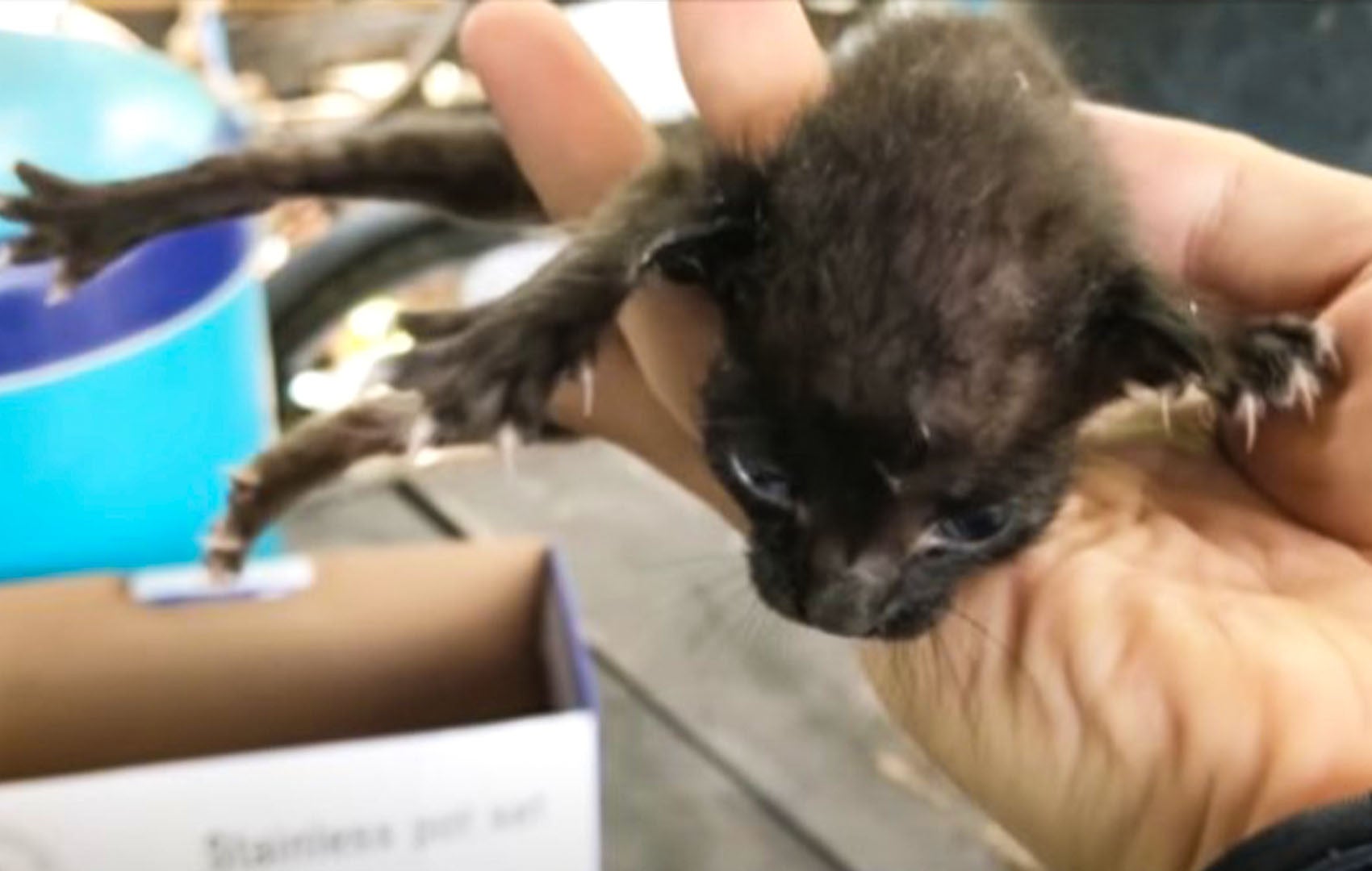 母猫が毒殺されて、生後10日程の子猫達が取り残されている所を保護。体は子猫とは思えない程冷え切り、ミルクを飲めなかったせいで手足が鳥の足のように骨だけになっていました。