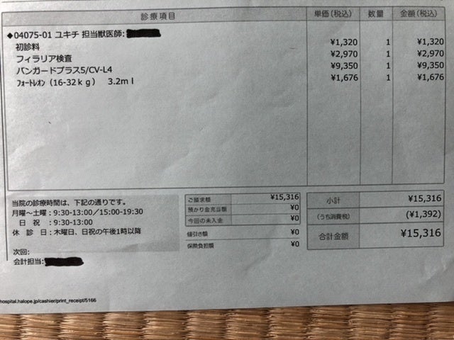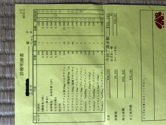 The total sum of vet cost has exceeded 100,000yen and it’s difficult to pay after next consultation day.The medicine for pulmonary hypertension is expensive.It’s 500yen per tablet and she needs it twice a day.